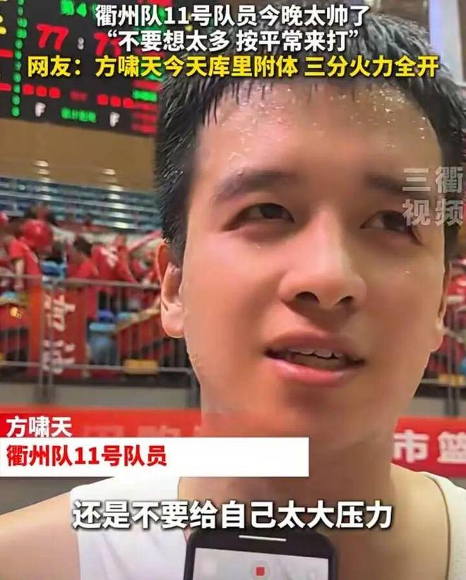 此前,方啸天在接受采访时也说过,自己的三分球都是靠练出来的,每天都要练100个、200个,“按平常来打,努力做好防守,不要想太多。”