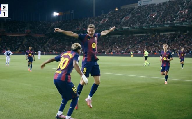 下半场回来,奥尔莫换下表现平平的德罗,巴塞罗那依旧保持围攻的局面。第57分钟,亚马尔披挂登场!刚刚上场一分钟,亚马尔边路利用个人能力打开缺口后,送出精准的传中,莱万头球破门,2:1!面对这种被动的局面,皇家社会不断做出换人调整,但是依旧难以改变场上的局势。拉什福德、奥尔莫持续远射,雷米罗延续本场神勇的扑救状态。
